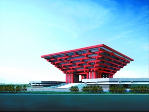 在上海市中心黄浦江两岸,南浦大桥和卢浦大桥之间的滨江地区,名为“东方之冠”的2010年上海世博会中国国家馆正准备进行最重要的一道妆扮——在展馆外立面上安装“中国红”的装饰板。年底之前,“东方之冠”将全面竣工,作为永久性场馆建筑屹立在黄浦江畔。