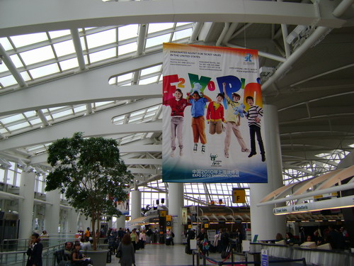 5月14日,从今年4月20日起,上海世博会公益广告出现在美国纽约机场、美国洛杉矶机场、英国西斯罗机场、法国戴高乐机场、德国法兰克福机场、日本成田机场、韩国仁川机场。在上海世博会宣传公益广告上,不同肤色的孩子们怀抱着世博吉祥物海宝,一张张热情的笑脸欢迎着五湖四海的人们。
