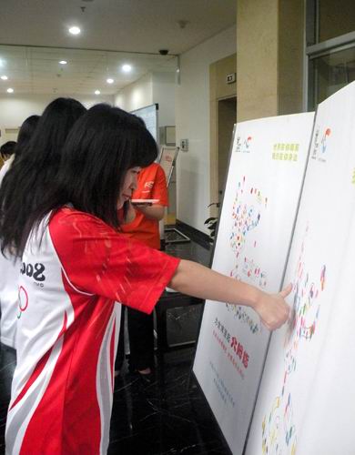 5月23日,恰逢北京奥运火炬上海站传递一周年之即,中国火炬手联盟上海分会在位于浦东新区的世博会志愿者工作站举办了“情系世博盛事,再传奥运辉煌”的公益活动,来自全国各地的近三十位2008北京奥运火炬手提出倡议,申请加入2010年上海世博会志愿者的行列,响应“世界在你眼前,我们在你身边”的志愿者口号,延续“和谐关爱”的奥运火炬手精神。