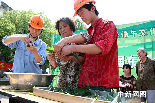 中新网上海5月28日电(徐云 郑莹莹)传承端午文化,构建宜居社区。端午佳节,地处上海浦东的世博社区——东明路街道举办了“端午邻里节”。百场文艺巡演、“包粽子”、“拍粽子球”比赛、滚铁圈等弄堂游戏、精彩纷呈的国学讲座……,丰富多彩的活动让东明路街道居民乐享一个快乐的传统端午佳节。完