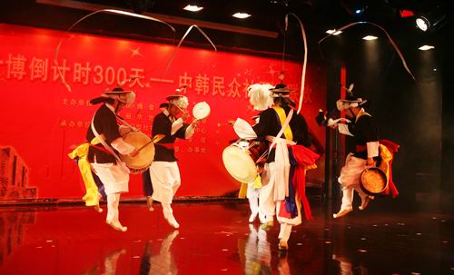 在联欢活动中,韩国学生访问团和浦东新区社区学院的学生,一同为观众们带来了精彩的歌舞和民乐表演,赢得了台下经久不息的热烈掌声。昔艺彬演唱了一首专为上海世博会创作的歌曲《我的梦》。据悉,昔艺彬是韩国首个国家舞蹈英才,目前在韩国艺术综合大学接受一年的舞蹈英才教育,计划在2011年她15岁时进入韩国艺术综合大学,接受专门的舞蹈教育。