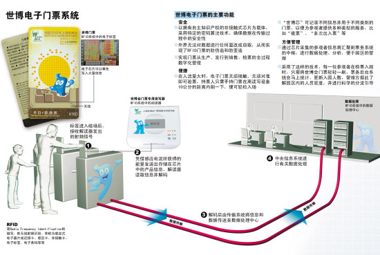 ●上海世博会会期半年,预计可吸引全世界7000万人次的参观者,其票务系统被称为有史以来最大规模的电子标签门票应用案例。
