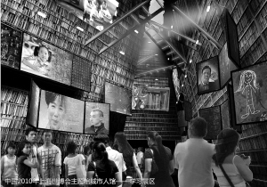 第三个展厅叫城市广场,其实是一个电影院,影院中八块屏幕同时播放世界上五个城市的“广场故事”,故事的线索是“寻找”。