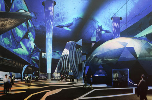 上海世博会主题馆——未来馆分为“昨日之梦”、“理想与实践”、“多种可能性”、“梦想正在实现”四个部分。展馆从“昨日之梦”开始重温人类的实践过程,运用影片、书籍和雕塑等方式展示从古至今人们对未来城市的幻想、设计与实践,并向参观者展现当今的实践成果和未来城市是建立在今日挑战基础上的理念。