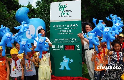 7月5日,浙江省奉化滕头村举行以“小村连世界,我们的2010”为主题的全民迎世博倒计时300天启动仪式。滕头村作为上海世博会“城市最佳实践区”参展案例中的唯一一个乡村,是全球最佳生态农村样板。中新社发 徐小勇 摄