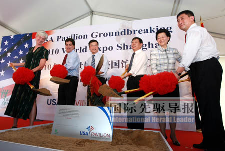 17日,今夏入伏后的第4天,上海最高气温升至36摄氏度。几乎是在“烘烤”的气氛下,美国商务部长骆家辉、中国商务部副部长马秀红、上海市常务副市长杨雄以及刚被奥巴马政府任命为上海世博会美国展区总代表的何塞·维拉里尔、美国驻沪总领事康碧翠、上海世博会事务协调局局长洪浩等共同为美国馆奠基培土。