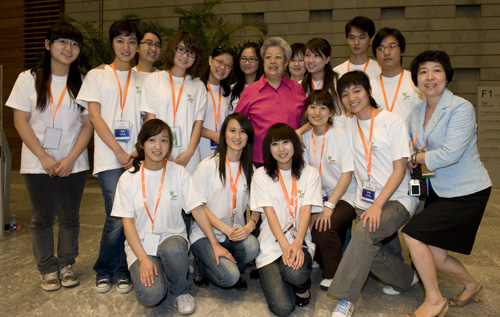 参观结束时,来自京沪两地的“走进世博会”展览青年志愿者们自发等候在展厅出口处向“吴奶奶”问好。吴仪鼓励大家要当好世博会志愿者,并与他们合影留念。