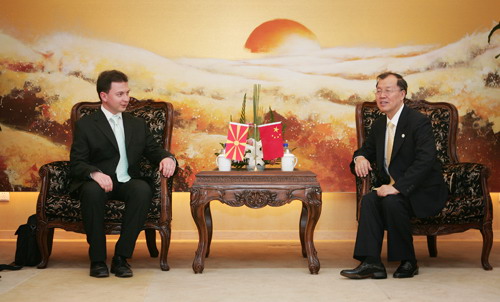 7月29日下午,上海世博会马其顿展区总代表哈吉·瓦斯科夫(Metodig Hadzi-Vaskov),在马其顿驻华大使法特米尔·杰拉迪尼(Fatmir Xheladini)的陪同下,访问上海世博局。