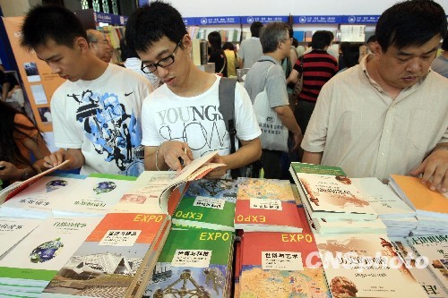 8月13日,2009上海书展在上海展览中心开幕,10余万种图书组成的“文化盛宴”令众读者“大饱眼福”。尤其是随着世博会的临近,世博丛书在本次书展上特别受青睐。中新社发 汤彦俊 摄