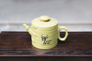 许四海受邀设计的十八款世博壶,紧扣主题,匠心独运,款款不同。其中一把表现“上海小吃”主题的紫砂壶,借用了小笼包笼屉的造型,名为“蒸蒸日上壶”,妙趣横生。“东方之冠壶”将壶嘴、壶把、壶盖和壶身融为一个整体,俨然一座缩微的世博中国馆。“上海世博字形对壶”是一对方壶,壶身4面分别为美术字的“上”“海”“世”“博”4字,形式感极强。许四海说:“上海世博壶要展现我们这个时代的活力,不能泥古不化,每一把壶要给人惊喜,兼具审美和实用价值。”(记者 林明杰)