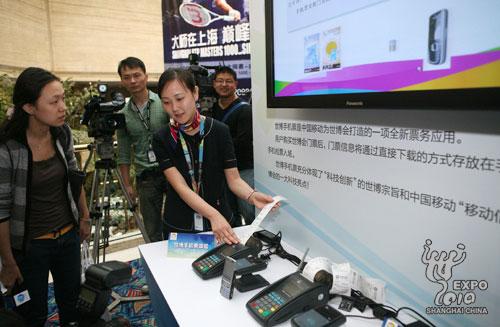 上海世博会手机票以采用RFID-SIM技术的SIM卡作为载体,将世博门票信息储存到SIM卡中,用户在世博园入口通过手机靠近检票闸机“刷卡”即可进入园区。同时,用户也可以通过手机,足不出户地购买到世博会手机票,省去送票或取票的麻烦。由于中国移动对世博手机票使用先进的无线通信与非接触通信技术,用户通过简单的手机操作,就可实现选票、购票、验票等传统实体票的“全功能”,同时还可查询购票信息、退票、领取纪念票等等。全过程无需更换手机,只需更换一张具有非接触通信功能的(U)SIM卡片,即可体验世博手机票带来的便利。