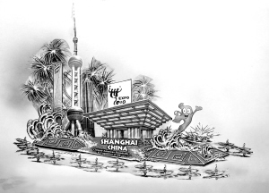 美国玫瑰花车巡游活动已有121年历史,今天揭晓的“上海世博玫瑰花车”设计彩稿,凸现中国元素、饱含上海气息、诠释世博理念。独具匠心的上海世博会徽、欢快俏皮的吉祥物海宝、端庄大气的中国馆、高耸入云的申城新楼……都融为一体地装点着“上海世博玫瑰花车”。帕萨迪纳市长、美国玫瑰花车委员会主席等嘉宾纷纷表示,这是美国花车巡游史上首次出现以世博会为主题的玫瑰花车,这必将激发各国观众了解参与世博盛会的热情。