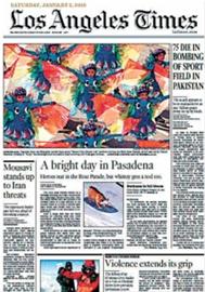 1月2日《洛杉矶时报》用接近通栏篇幅的照片报道了上海世博玫瑰花车。照片中,参加花车巡游的上海小演员们身着象征着大海的蓝色衣裙,面带灿烂的微笑,张开蝴蝶的双翅,在加州灿烂的阳光下“飞翔”。