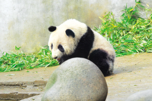 据介绍,“闽闽”出生于2008年9月3日晚,雌性,出生时体重102.8克,来上海时已长到35公斤。“闽闽”的妈妈叫“竹韵”,第一次做母亲就产下了双胞胎,“闽闽”是其中的妹妹。她尖嘴、脸较圆,最喜欢和人玩耍,经常爬在铁栏上“深情”呼唤饲养员,是个典型的人来疯。
