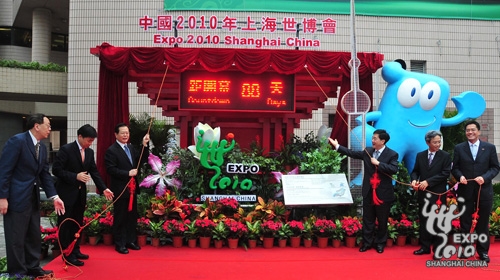 同日,上海世博会计时景观启动仪式举行,一座以中国馆和吉祥物海宝为主题的大型世博计时景观正式亮相香港街头。此次设立的大型世博计时景观将一直摆放至上海世博会结束,即2010年10月31日。同时,在香港文化中心、星光大道等标志性建筑,还将布置世博户外公益广告,如刀旗和大型海报等,也将展示至10月31日。香港市民还将在大年初二晚上的传统烟花会演中,欣赏到加入上海世博元素的烟花表演。