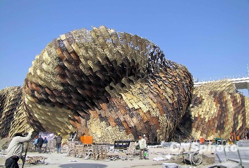 1万多平方米的“藤条篮子”西班牙馆是一座复古而创新的“藤条篮子”建筑,外墙由惊人的12000平方米藤条装饰,通过钢结构支架来完成加固。中新社发 井韦 摄