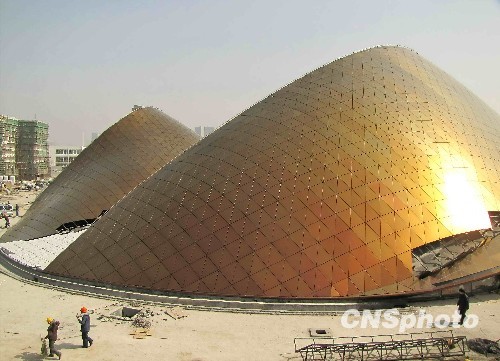 上海世博会阿联酋展馆占地6000平方米,连绵起伏的橘色外壳好似一片变幻莫测、广袤无垠的沙丘。整个阿联酋馆由三座高达20米、连绵交织、大小不同的“沙丘”组成,分别代表古代、现代和未来。三座“沙丘”采用双曲结构和国内首次采用的“Free-form”网格结构,使得相互之间看似分离,却又如同沙砾般相互交织。阿联酋馆作为上海世博会最大的展览场馆之一,使用了大量环保建材。上海世博会结束后,展馆将会被拆卸,运回阿联酋,并在当地重新建造。中新社发 井韦 摄