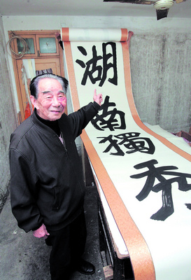 普通的对联经常见,但您见过长度超过100米的对联吗?昨日,经过近1个月的精心装裱,由省书法家协会会员章桂佛写成的颂世博百米长联大功告成,他期待通过《长沙晚报》在长沙寻找百米高楼进行展示。