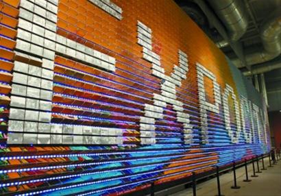 值得一提的是,在场馆靠近出口处,设有24台电子指纹留言机。参观者可以在电子屏上任意用手指写下自己想说的话语。所写的文字将会自动被计算机记录并打印出精美的纪念票券,同步通过投影仪显现在两边墙上,进行深入互动。(林莉莎 俞陶然)