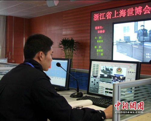 中新网嘉兴4月14日电(记者 赵晔娇)今天,记者探访浙江世博安保系统的中枢神经——浙江世博安保前方指挥部发现,在大屏幕上,浙江省8个水、陆卡点, 47条道路的无名道口,以及11地市的监控画面清晰度极高,连根头发丝都能看清楚。