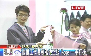 中新网4月15日电 据台湾TVBS报道,上海世博会台北馆将于4月20日试营运,台北市府15日特别对外召开记者会,让台北馆工作人员的制服亮相,而幕后设计推手是知名造型大师Roger,他也现身说明设计理念。