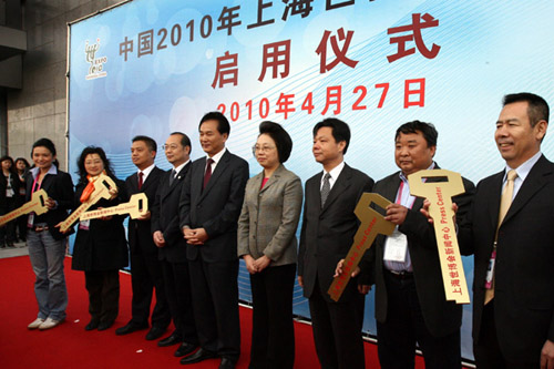 中宣部副部长蔡名照,中共上海市委副书记殷一璀,中共上海市委常委、宣传部长杨振武,上海市政府秘书长姜平出席新闻中心启动仪式,并向入驻新闻中心专用媒体工作间的中外新闻单位代表发放了工作间钥匙。