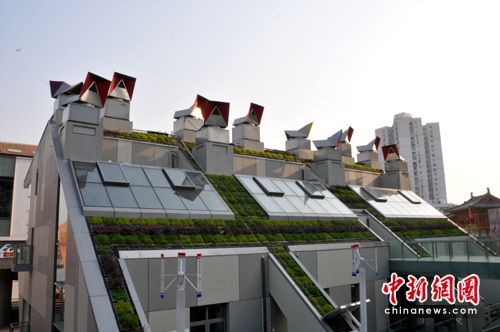 安装在屋顶上五颜六色的“风帽”是一大亮点,可以随风向灵活转动,通过温压和风压将新鲜的空气源源不断地输入每个房间,同时利用太阳能和江水源给进入室内的新风降温除湿。