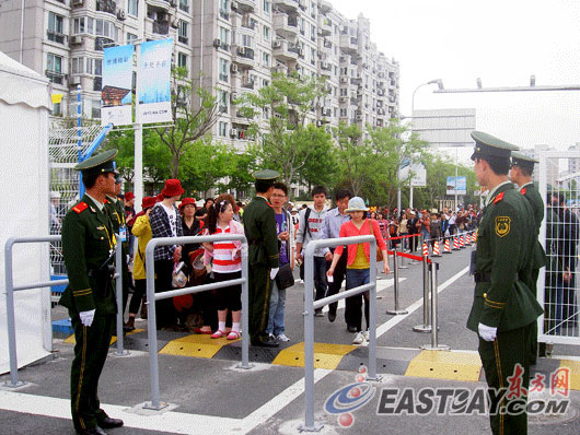 今天(4日)早上8点半左右,虽未到上海世博会开园时间,但世博园的4号、5号、7号灯“热门”入口已经排起了长队,有的队伍甚至排到了蛇形等候区外。