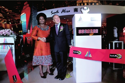 南非世界杯将于6月11日开幕,这是世界最高级别的足球盛会首次踏足非洲大陆。世博会南非馆开馆仪式上,李肇星与南非国际关系与合作部长马沙巴内共同摁下了南非世界杯的倒计时牌。“世界杯期间,世博会南非馆将不间断播放世界杯比赛,欢迎大家来看!”马沙巴内向参观者发出了邀请。