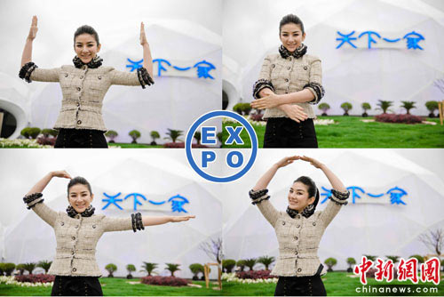 中新网5月11日电 作为“世博手势形象大使”,同时也是上海女孩,黄奕日前来到世博馆“天下一家”未来馆门口,拍摄一组手势大片,身体力行教大家如何演绎EXPO的含义。