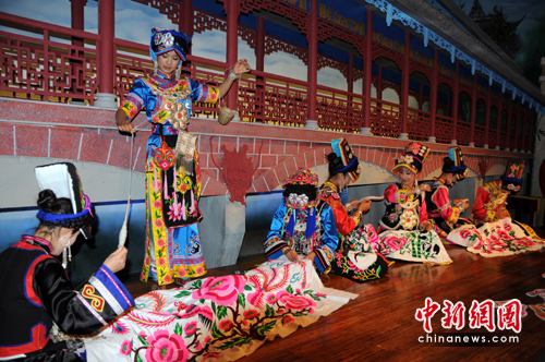 中新社上海5月12日电(记者 张冬冬)今天是“5·12”四川汶川特大地震两周年,来自四川茂县的7位羌族姑娘亮相上海世博会四川馆,现场表演少数民族舞蹈及羌族刺绣,以此“感恩”世界。