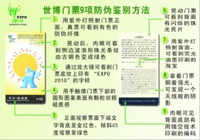 世博会园区现场白莲泾、高科西路、长清北路、上南路、后滩、鲁班路、西藏南路、半淞园路、马当路、东昌路水门等10个出入口,销售当日普通票、当日优惠票、当日夜票等三种门票。
