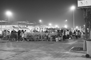 500多人在围栏边席地而坐,或聊天或瞌睡,为的是上午9时开园后第一时间进入……这是今晨1时,记者在世博园区浦东上南路入口处看到的情形。同样的一幕,也出现在了距离文化中心较近的长清路、洪山路、高科西路等入口,总人数不下2000人。如此场面,令值夜班的安保人员傻了眼,“开园第一天也没这么早来的,有的昨天还没闭园就来了!”