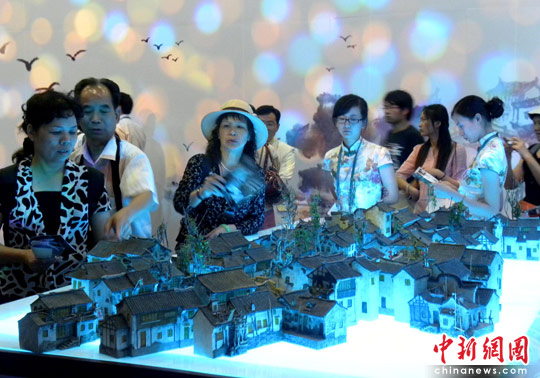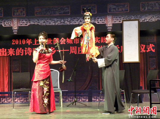 作为二0一0上海世博会最佳城市实践区展示案例的“周庄——水‘洗’出来的诗画水乡”今日揭幕,香港著名摄影家简庆福、二胡演奏家马晓辉、国画家杨明义等文艺界嘉宾及古镇保护专家学者共同见证开馆。
