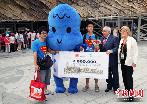 中新网上海6月22日电(记者 殷春永)上海世博会西班牙馆21日迎来第200万名游客,除外观酷似“大篮子”的造型给人们难忘的印象外,该馆的接待人员能说西班牙语、中文和英语,亦颇受游客赞赏。