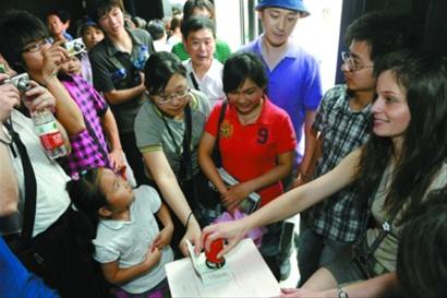 游客们亲切地叫她“美女”,只是不知道她的名字。昨天采访中,这位“最美敲章员”说,她叫米娜,之所以投身世博会工作,是因为热爱中国的文化。