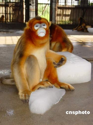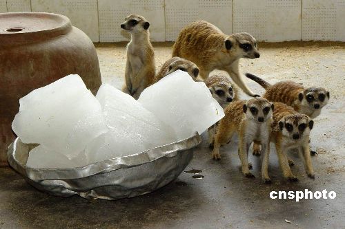 酷暑时节,上海野生动物园准备了大量冰块,分别放置在动物们的“房间”,让其在盛夏感受些许凉爽。中新社发 陈静 摄