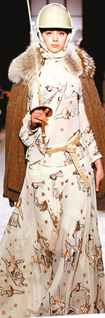 剧情梗概:柔美而帅气是法国经典品牌Hermes在今年秋天的最大特色。设计师Jean Paul Gautier以一贯的叛逆手法,推出帅气又性感的秋冬新装,重新演绎了现代的女骑士精神。贴身的衬衫以雪纺丝绸等垂顺的面料来制作,并有了长长的飘带装饰来展现女性的温柔气质,不过帅气夹克和风衣则与加在打底的软衬衫造成了强烈的对比,即使是身着复古的提花丝绸长裙的女士,也要搭配一件温暖的羊绒大衣,再佩戴一个圆形的骑士帽来体现帅气。在这样的搭配下,服装的色彩不用多,像酒红色、深棕色、象牙白等经典的颜色,只要统一色调,就能完美地体现了Hermes一贯的简约奢华。
