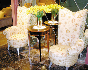 既然名为情侣椅,当然最适宜于摆放在私密的卧室内。也许正应了情侣之间容易存在的默契,相处时感觉甜蜜,独处时也要有自己的美好心情,所以虽然两张椅子的扶手采取的是不对称的设计,让一对情侣椅子一个没有左扶手、一个没了右扶手,单独看一张时却也独特,当两张椅子合二为一的时候,又是一个十分贴合的双人坐椅,高高的靠背弧度优美,坐下去时身心都得到了彻底的放松。用手轻轻触摸布艺表面,可以感觉到椅子上的精致绣花,温馨而有立体感。