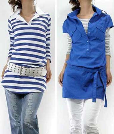 有三条白纹的领口及呈喇叭形状的裤子,三条白纹的领口都是水手服的特征。皱纹布、薄棉布及松身的衬衣让人联想起蓝天白云下的惬意航海生活。隐约可见的,是小时候校园内蓝白校服的影子。所以,水手服的短裙或者连衣裙都多少带点学生的气息,像日韩剧中女学生的形象,但是最好不要选择酷似校服的水手服,那样未免显得造作。