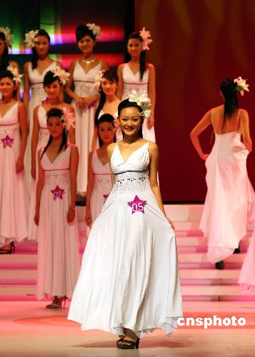 8月2日,第56届世界小姐中国区总决赛在北京怀柔国际会议中心落幕。来自北京的16号选手刘多(中)从31位佳丽中脱颖而出,夺得2006“中国小姐”称号,10号选手古岚(右)获得亚军,张铌(左)获得季军。中新社发 李伯男 摄