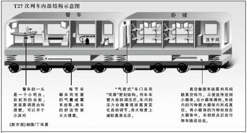 中新网6月29日电 据新京报报道,7月1日,北京开往拉萨的首趟T27次就将发车了,可是这趟首发西藏的列车却一直“藏在深闺人不识”。新京报记者28日登上了T27次,体验了许多此前未经披露的列车新颖之处。