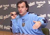 不过,这似乎并不影响他的执教能力。正是在他的带领下,阿根廷近年来向世人呈现了一场场精彩的攻势足球。可以说,他疯狂的3-3-3-1攻击阵容,已经深入人心。对于2002年的世界杯目标,他的回答很简单:不但要夺取世界杯,而且还要赢得好看。