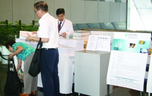 上午10点,记者来到中环的中银香港大厦,走上三楼营业厅,就看到了摆放在醒目位置的农行H股认购的展台,陆陆续续有人在展台拿走厚厚的资料。在记者逗留的15分钟时间里,大概有20多人拿走资料,其中既有白发老翁也有年轻小伙。