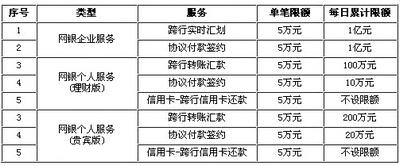 中行“超级网银”业务限额