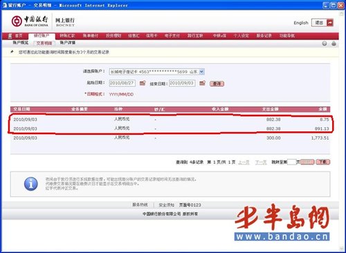 邹先生回想到,“当时登陆了中国银行网上银行的支付页面后,我甚至没有输入动态口令码,中行却在没有确定用户输入信息正确且合法的情况下就扣钱,他们肯定有不可推卸的责任。”邹先生说道,“3日下午,去柜台办理业务时询问过扣钱的原因,柜台的工作人员自己就说不清楚。到银行退还我钱的时候,中国银行都未给我一个解释的电话或者短信。”