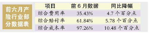 保监会指出,国内产险业今年上半年实现了行业经营上的“两降两升”,即:费用率、赔付率下降,经营效益、保费充足率上升。
