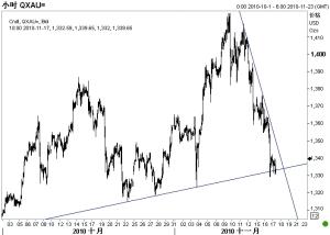因投资者担忧爱尔兰财政问题恶化并可能想欧元区蔓延,市场避险情绪继续升温,推升美元继续走强,美指突破79创下9月28日以来的新高。中国紧缩传闻愈演愈烈,大宗商品价格纷纷跳水,原油价格近期跌幅逾7%。周二金价一度跌破1330美元,跌幅超过2%。
