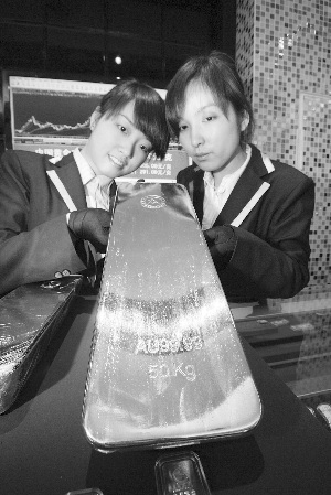 “我们江苏最大的投资金条也就是25公斤的,因为上周这位客户来预订50公斤规格的大金条,所以我们赶紧向总公司预订,帮助客户定制超大金条。”据中国黄金江苏分公司负责人介绍,50公斤的超大金条,全国也仅仅卖过四五根。