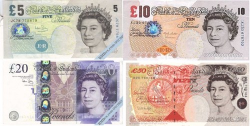所有英镑的正面都是英国女王伊丽莎白,反面的图案则根据钱币的面值各有不同。